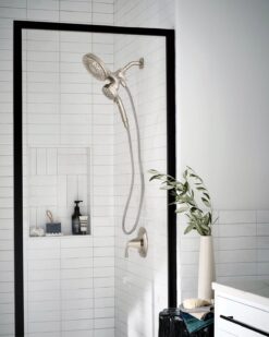 Moen’s Engage Collection features Magnetix, a magnetic docking system to make replacing your showerhead simple and easy. With six showerhead settings to choose from, creating an at-home spa experience is within reach.