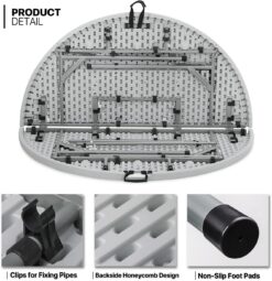 - Wide Application – A folding table is great for almost any occasion, whether indoor or outdoor. It can be used as a picnic table, dining table, barbecue side table, commercial table, patio table or bring it with you on a camping trip, host a picnic party in your backyard, etc.