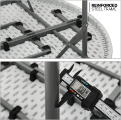 - Lightweight And Portable – Lightweight tabletop and frame, comes with a handle that makes it easy to carry by one person after folding.