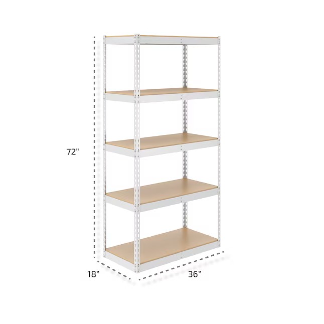 MonsterRax Steel Heavy Duty 5-Tier Utility Shelving Unit (36-in W x 18-in D x 72-in H) White, (300-lb Capacity Per Shelf)