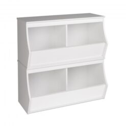 WRSD-0002-2M – Monterey Stacked 4-Bin Storage Cubbie, White, The Monterey Stacked Storage Cubby (Qty 2) offers versatile and convenient storage for entryways, mudrooms, playrooms, children’s bedrooms, etc. Each bin measures 15.75 in. W x 16.75 in. H x 14 in. D which provides ample space for your books, hats, gloves, toys, games, art supplies, sports equipment and anything else your family can throw at it. Use one unit alone or stack multiple units to create a whole storage system. (Recommended to only stack 3 units high) Whether stacked high or on its own these cubbies are sturdy for everyday use and can be fixed to the wall with the safety strap provided.