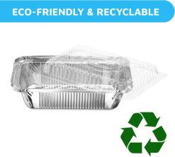 - MADE OF SUPERIOR QUALITY, ECO FRIENDLY ALUMINUM FOIL: Disposable doesn’t mean wasteful. Fully recyclable, our disposable food containers can help you reduce your carbon footprint. They are also structurally stronger, so they can last a while in your kitchen before being retired.