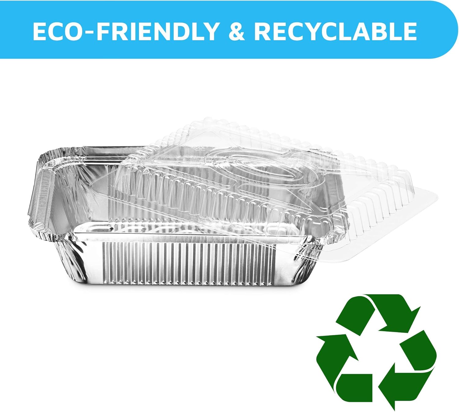 - AFFORDABLE, DURABLE, VERSATILE, REUSABLE, THEN DISPOSABLE: Just a single pack of our 100-count aluminum pans with lids effectively replaces heavy dishes, serving trays, cling film, plastic jars, and plastic bags. Cleanup is a breeze too: gather any leftovers, then chuck the pans into recycling.