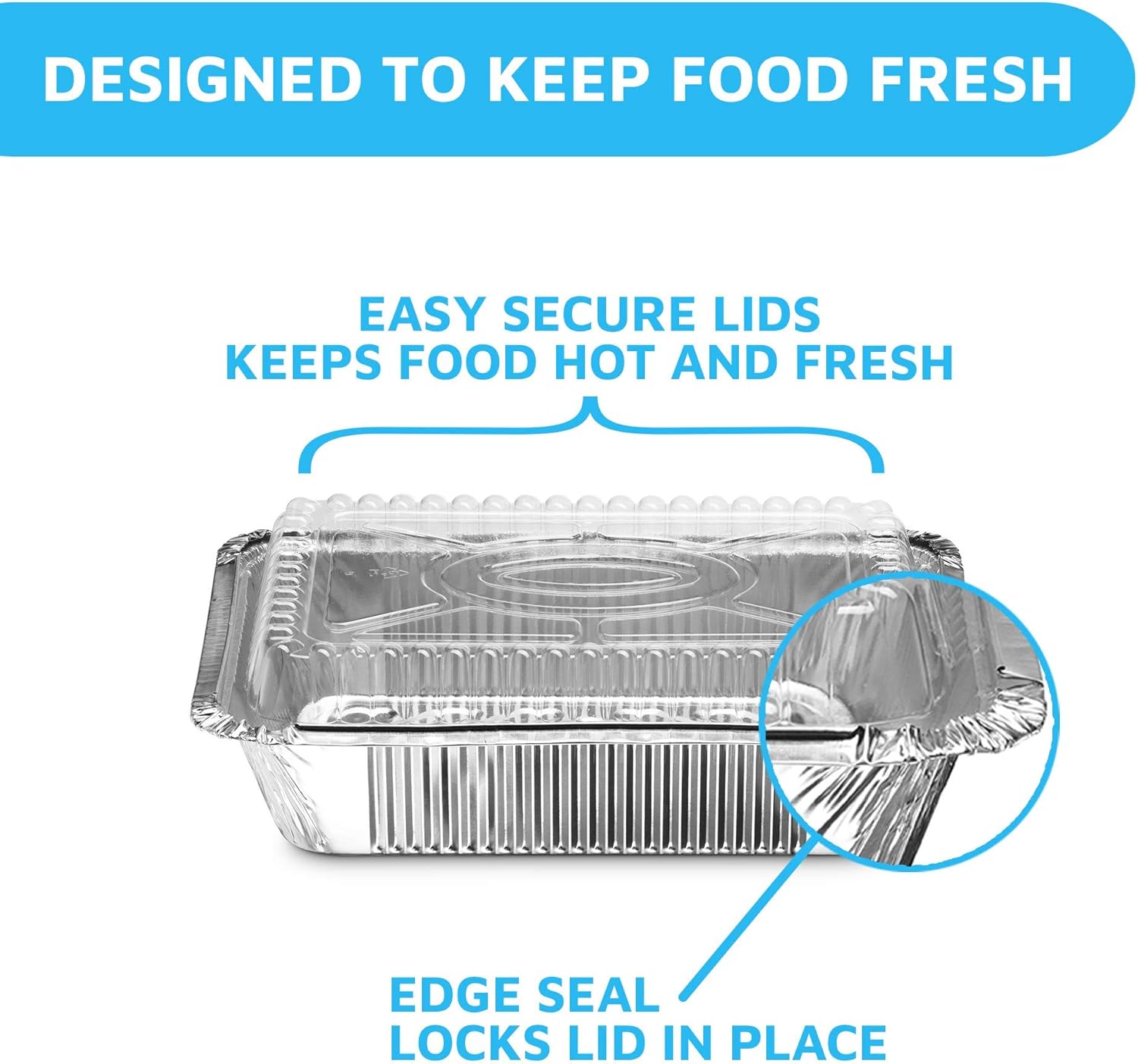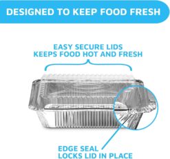 - SIMPLE ONE-HANDED EDGE SEAL HELPS LOCK IN FOOD FRESHNESS: By design, our foil pans with lids work together to outperform clamshell containers. Each disposable food container comes with a clear lid, and you can easily pinch the foil edge over the lid rim for a strong freshness seal.
