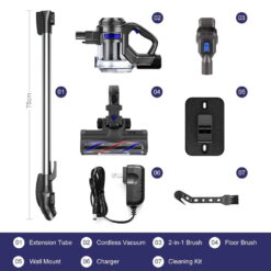 - [Super Long-lasting Battery & Powerful Suction]: outstanding 20-35mins cordless running time ensures thorough cleaning all around the house. The updated motor provides 120-watt powerful suction to meet every cleaning demands, picking up debris and dusts, crumbs and pet hairs in minute. It performs well on all kinds of hard floors, carpet, stairs and windowsills, sofa and bed, desk and curtain, etc