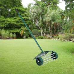 - Easy-rolling lawn aerator lets air, water and nutrients reach grass roots This Rolling lawn aerator helps you grow a lush, green lawn Quick and easy to assemble