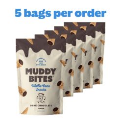 - Pack of 5: Each Package will arrive with 5 resealable bags of Muddy Bites containing about 14 Bites each in each bag. Due to our products containing chocolate we recommend keeping in a cool or room temperature environment when received.