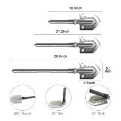 This wonder tool extends fully to 29 inches in length, weighs just 1.94lbs, and is fully adjustable to any length in between so anyone of any build and height can safely carry and move this multi-use shovel with ease. When fully folded, our Multi-Purpose Folding Shovel measures 9 x 6.5 x 1.8 inches for easy, compact, on-the-go use.