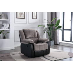 This recliner is ready to accommodate all your needs and wants for a comfortable living room setting. It features plush armrests with extra padded seat backs and headrests and is wrapped in a textured champion microfiber fabric and polyurethane for pure comfort. Its seat cushion is designed with pocket coils and covered with high quality, high density foam, for added comfort. The assembled dimensions are 45 inches in width, 39 inches in depth, and 41 inches in height, weighing in at 71 pounds.