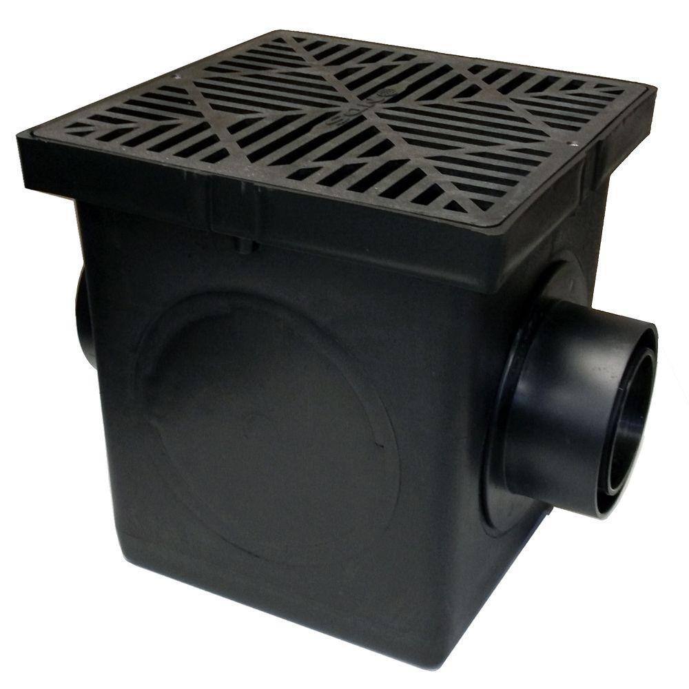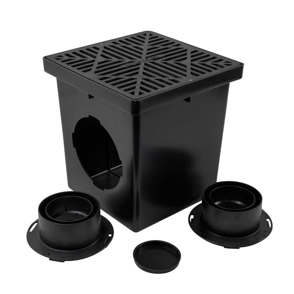 - Kit includes 2-Opening 12 in. Catch Basin, 2 Outlet Adapters, 1 Plug, Plastic Drain Grate