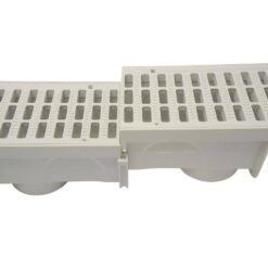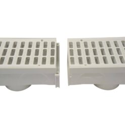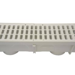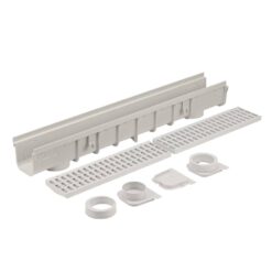 - 5 in. Pro Series Channel Drain kit comes with a channel drain, polyethylene channel grates, end cap/outlet, and end cap