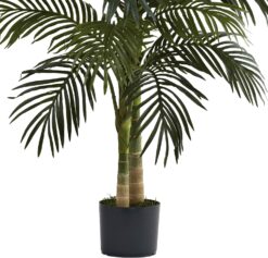 - HOME DECOR ACCENT: A beautiful lifelike plant perfect to accent any room or space for year-round greenery. Let’s bring the tropics to you, and make it “sunny” in your home or office no matter what the weather is outside. This elegant golden Cane Palm tree stands 4′ high, with two separate trunks bursting forth with hundreds of palm leaves. It looks so real, you’ll be searching for the X that marks buried pirate treasure. Ideal for any décor, and also makes a perfect gift.