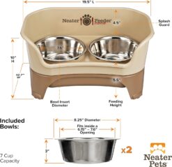 Neater Feeder – Express Model – Mess-Proof Dog Bowls (Medium/Large, Cappuccino) – Made in USA – Elevated, No Spill, Non-Tip, Non-Slip, Raised Stainless Steel Food & Water Pet Bowls