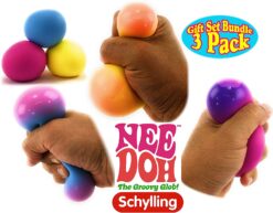 Gift Set Party Bundle Includes All 3 Different Colors of Schylling’s Nee Doh COLOR CHANGE Groovy Glob! The NeeDoh stress ball will help you mellow out! Feeling Stressed? Then you knead Nee-Doh! Grab a glob and give a squeeze, revealing the changing color inside! The experience will blow your mind, soothe your soul, and have you feeling groovy in no time!