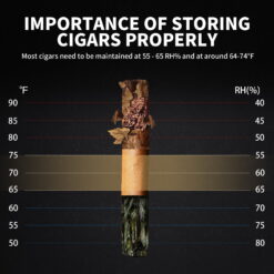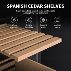 More Details Volume: 16 L Dimensions: 9.9″x14.2″x20.3″ Hygrometer: Easy to read & More Accurate Wood Type: Spanish Cedar Wood – The friend of your collection! [Other Features] – Dual Pane Glass Door; Glass Panel Touch Control; Less than 38 dB Low Noise; Built-In LED Light; Frequency Conversion Technology;Upgrade digital hygrometer displays