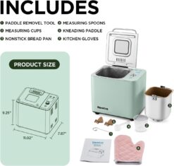 Neretva Bread Maker, [20-IN-1 & 2LB] Smallest Bread Machine Metal Material & Nonstick Ceramic Pan & Low Noise Bread Maker Machine for Gluten Free White Wheat Rye French Pizza etc (Light Green)