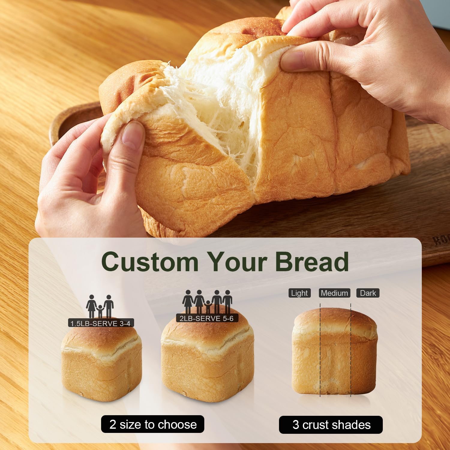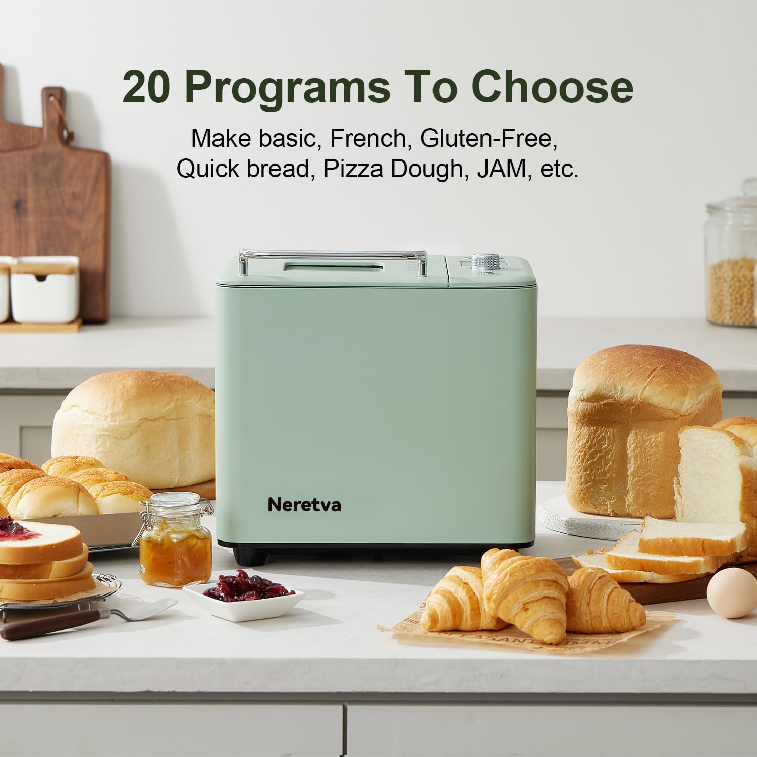 Neretva Bread Maker, [20-IN-1 & 2LB] Smallest Bread Machine Metal Material & Nonstick Ceramic Pan & Low Noise Bread Maker Machine for Gluten Free White Wheat Rye French Pizza etc (Light Green)