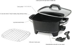 With a deep, Premium Whitford non-stick interior, you can quickly and easily cook a small roast, sear steaks, and more. Easy to read, adjustable temperature control allows for great results. Unit also features a die cast aluminum pan, sturdy tempered glass lid, heat resistant and stay cool handles. Skillet and lid are dishwasher safe with the probe removed.