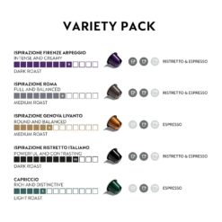 - NEW LOOK, NEW NAME, SAME GREAT TASTE: This Nespresso Original Line espresso coffee pod pack contains best-selling Nespresso capsules (10 each) Capriccio, Ispirazione Roma, Ispirazione Genova Livanto, Ispirazione Firenze Arpeggio, Ispirazione Ristretto