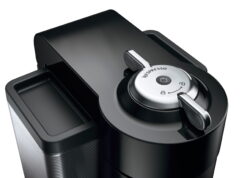 Nespresso is constantly evolving the way you drink espresso and coffee. Now the pioneers of single-serve coffee, Nespresso, introduces the VertuoLine Evoluo by De’Longhi with an all-new design and colors. Offering freshly brewed Coffee with crema as well as delicious, authentic Espresso, the Evoluo machine conveniently makes five cup sizes, the new larger 14oz. full brew Alto, 8 oz. Coffee, 1.35 oz. Espresso, 5 oz. Gran Lungo, and Double Espresso all at the touch of a button. It uses three different capsule sizes: large capsule for Alto and Coffee, medium capsule for Gran Lungo and Double Espresso, and a small one for Espresso.