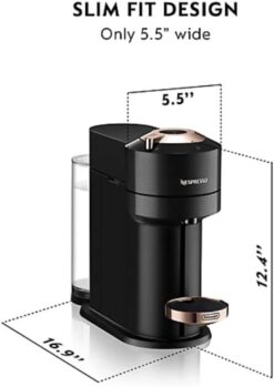 - SLIM & SUSTAINABLE DESIGN: Nespresso’s newest innovation, Vertuo Next, is the most compact, sustainable, and smart Vertuo machine yet. It’s made of partially recycled materials, and is only 5.5 inches wide.Â