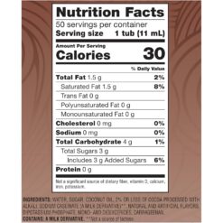 Ingredients: WATER, SUGAR, COCONUT OIL, 2% OR LESS OF COCOA PROCESSED WITH ALKALI, SODIUM CASEINATE (A MILK DERIVATIVE)**, NATURAL AND ARTIFICIAL FLAVORS, DIPOTASSIUM PHOSPHATE, MONO- AND DIGLYCERIDES, CARRAGEENAN.