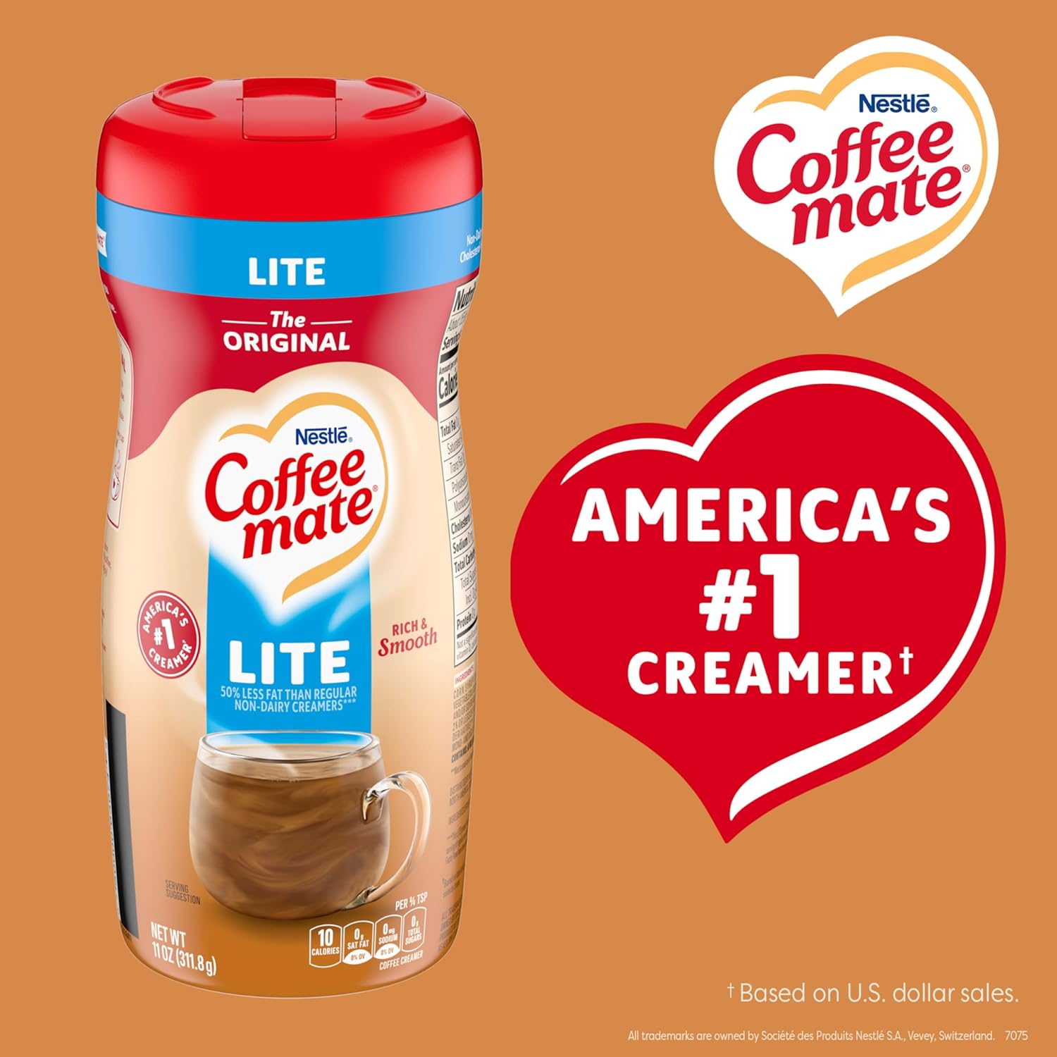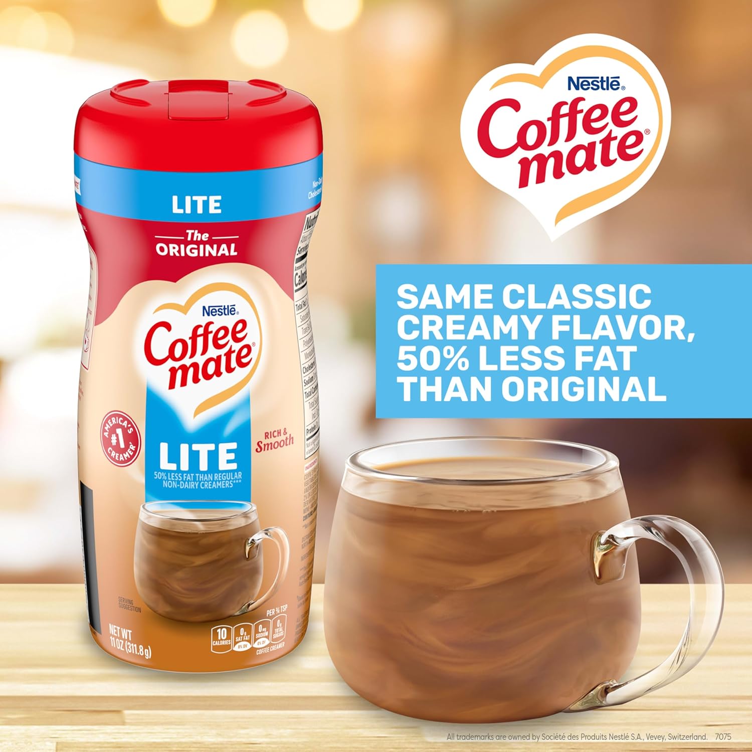 - Non-Dairy Coffee Creamer: Nestle Coffee mate Original Lite coffee creamer adds a rich, velvety smooth, classic creamer flavor to your cup of coffee with 50% less fat than the Original Coffee mate flavored creamer