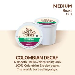 New England Coffee Colombian Decaffeinated Medium Roast Single Serve Pods, 12ct Box (Pack of 6)