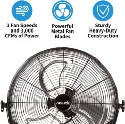 NewAir Floor Fan | 18″ Air Fan | High Velocity Blade Fan | 3 Speed Settings | Heavy Duty Fan For Industrial Use | Portable Shop Fan | Black | WindPro18F
