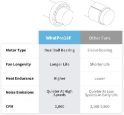 Garages, workshops, barns, greenhouses and other outbuildings: these utility spaces get hot, and you can’t do your best work when you’re overheated. Bring down the temperature with a fan that works as hard as you do. The 18-Inch WindPro18F features a durable blade housing with an easy-to-clean black floor stand and grate. The plated blades slice through the air to provide constant air flow anywhere you need it – even if you prefer to mount it to the wall. Three different fan speed settings offer a maximum of 3, 000 cfm of power for robust ventilation. The dual Ball bearing motor is an energy-efficient choice that reduces friction while delivering intense air flow when standing just one foot away from the fan. Air flow capacity 3000 cfm