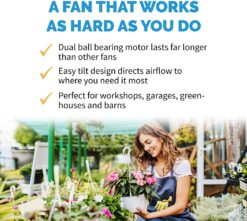 - Ball-bearing motor and powder-coated steel construction last longer than other fans on the market