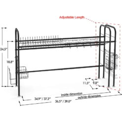 Nex Adjustable 35-37” x 9.8” x 24.5” Dish Rack, Black Stainless Steel