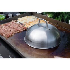 - Durable hot-rolled steel and pre-seasoned griddle top