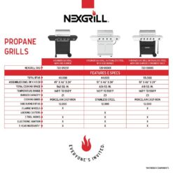 This NEW Nexgrill 5-Burner Gas Grill with Side Burner is crafted from polished stainless steel and porcelain-coated steel materials. With 618 sq. in. of total cooking space this BBQ offers enough space to cook for small gatherings or large parties. Its even heat cooking system includes stainless steel burners, angled flame tamers and enhanced grates that work together to distribute consistent heat across the entire cooking surface and to reduce grill flare-ups. Make your next grill a Nexgrill.