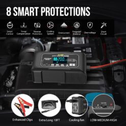 - 【SUMMER HOLIDAY BATTERY HOUSEKEEPER】Smart control, temp compensation in hot or cold climates, reverse protection, cooling system, overcurrent, fireproof material, overcharge, short circuit. Battery trickle charger with multiple protections ensures the safety of charging perfectly for maintaining batteries for months over the winter or holidays. Avoid battery failure in advance. No worries!