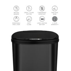 Nine Stars 13.2 Gallon Trash Can, Motion Sensor Kitchen Trash Can, Black Stainless Steel