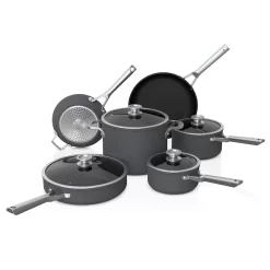 - This premium cookware has an extremely durable shot-blasted, hard-anodized exterior that resists scratches like stainless steel