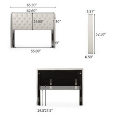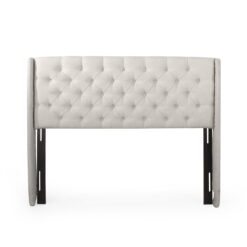 Noble House Ashley Full/Queen Wingback Tufted Beige Fabric Headboard