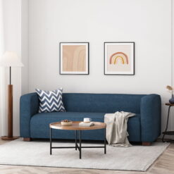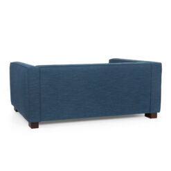 Noble House Bartram Indoor Fabric Upholstered Loveseat, Navy Blue and Dark Walnut