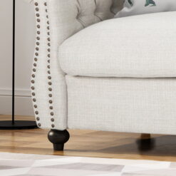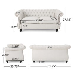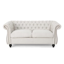 With our gorgeous Noble House Ember Interiors Aaniya Fabric Chesterfield Loveseat Sofa, the timeless Chesterfield look can make its way into your living room with a modern touch. Taking this cherished classic design, this piece features traditional elements such as deep button tufting, scrolled arms, elegantly turned legs, and Nailhead Trim accents. Finished with a low backrest, this loveseat offers an open, streamlined design for your lounge area. Along with its impeccable style, this deeply-seated loveseat provides exceedingly comfortable cushions, instantly making this the centerpiece of your interior space.