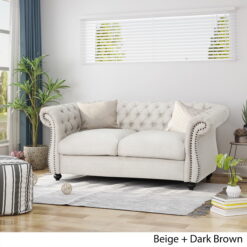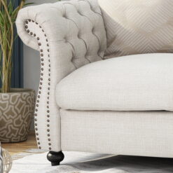 Noble House Ember Interiors Aaniya Fabric Chesterfield Loveseat Sofa, Beige