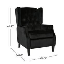 Noble House Zakyiah Standard Velvet Wingback Recliner, Black