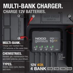 NOCO Genius GENPRO10X4, 4-Bank, 40A (10A/Bank) Smart Marine Battery Charger, 12V Waterproof Onboard Boat Charger, Battery Maintainer and Desulfator for AGM, Lithium (LiFePO4) and Deep-Cycle Batteries