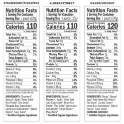 DELICIOUS & NUTRITIOUS: Made with organic fruits & veggies like strawberry, blueberry, blackberry, cherry, banana, beet, 5g of plant protein, 5-6g prebiotic fiber, flax seed, healthy fats like Omega-3s, antioxidant-rich superfoods, and essential vitamins & minerals like Vitamin C, calcium, iron, and potassium.