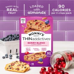 Nonni’s THINaddictives Almond Thin Cookies – 6 Boxes Berry Blend Almond Cookies – Almond Cookie Thins w/Cranberries Blueberries Goldenberries Raisins Sunflower Seeds – Kosher – 4.4 oz