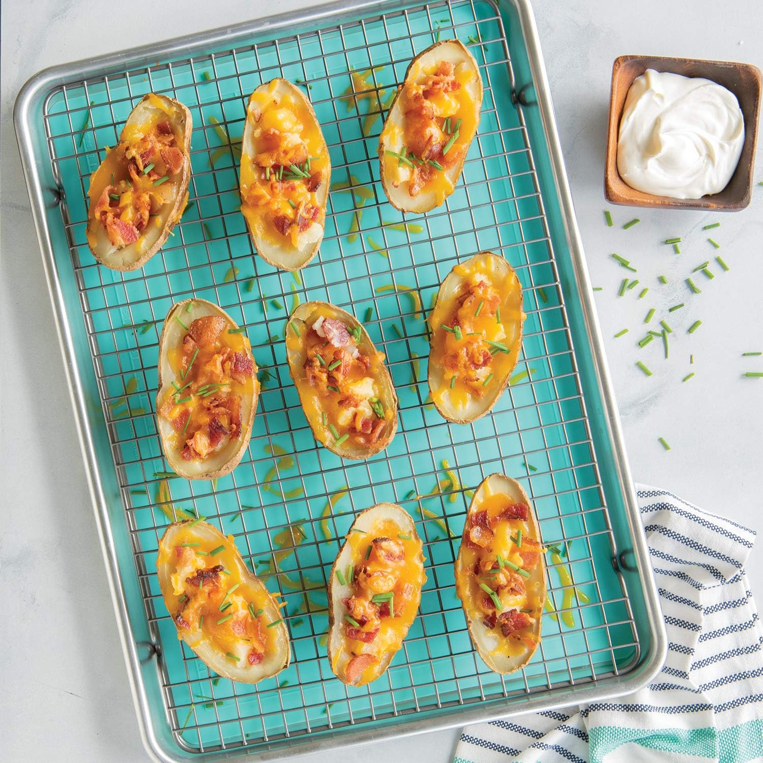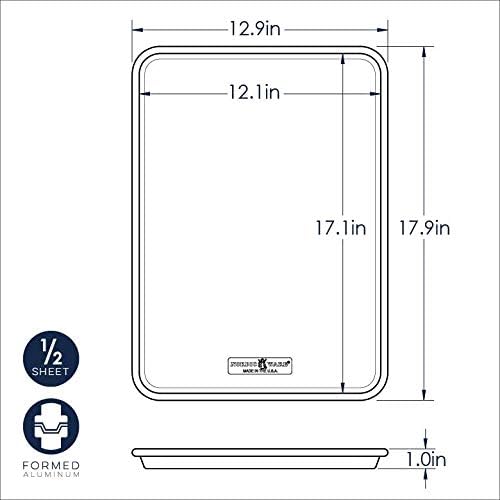 - Set includes half sheet aluminum pan, silicone baking mat and cooling rack