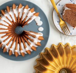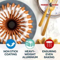 A bold and radiant shape that’s oh-so easy to slice! Brilliance Bundt Pan is made of cast aluminum which provides fine details and superior baking performance. Distinctive premium nonstick interiors allow for quick release and easy cleanup. It’s brilliant! Mixes and recipes may vary. Fill the pan no more than 3/4 full to avoid overflow. Pan has a 10-cup capacity. Specifications: Length – 26.04cm Width – 26.04cm Height – 9.84cm Weight – 830g Capacity – 10 cups Material – Cast aluminium Warranty – Lifetime Warranty Nordic Ware 85777 – Brilliance Bundt ® Pan quantity 1