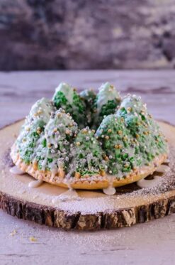 Nordic Ware genuine Bundt® pans are made of durable cast aluminum to achieve the most crisp, intricate cake detail possible. Cast aluminum’s superior heat conductivity ensures controlled, even browning of cakes and treats. Premium silicone nonstick is made without PFAS and PTFE for healthy baking and ensures effortless release and cleanup. Oven safe to 400 degrees Fahrenheit. A cake baked in this pan and sprinkled with powdered sugar will resemble pine trees blanketed with freshly fallen snow! Pan exterior is 9.7 inch diameter and is 4.3 inches in height. The pan capacity holds cups. Mixes and recipes may vary. Fill the pan no more than 3/4 full to avoid overflow. Proudly American Made since 1946, our heirloom-quality pieces are made to withstand a lifetime of use in your home kitchen.