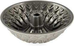 An intricate stained glass window inspired the design of this handsome pan. This Bunt pan produces cakes that are equally artful!.