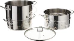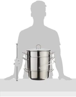 Measures: 18.5″ X 15.25″ X 11.5″/ 47cm x 38.5cm x 29cm. Capacities: steamer insert: 11.75Qt/ 11L. Juice container: 4Qt/ 3.8L. Water pot: 7.25Qt/ 6.75L. Extremely versatile, multipurpose, professional gauge stainless steel steamer juicer and steamer. 3 simple steps for pure, natural juices. The most effective and simple way to make your own juice. Rubber tube and clamp along With recipes and instructions are included. An oven roaster, stove top cooker and covered baker/server. Roast meats, steam vegetables and seafood. Use steamer in base pot or use Base pot with encapsulated base to provide even heating for great stove top cooking including induction stove tops. Perfect for baking and serving your favorite casseroles – oven safe to 400ËšF/ 205Ëšc. Recipes and instructions included.